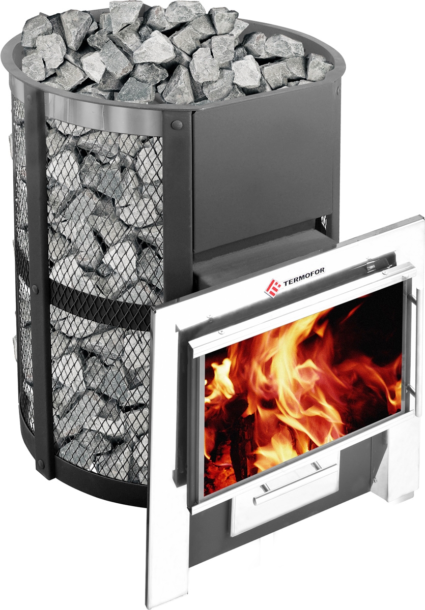 • Удобство топки из смежного помещения: выносной топливный канал позволяет загружать дрова, не заходя в парилку.